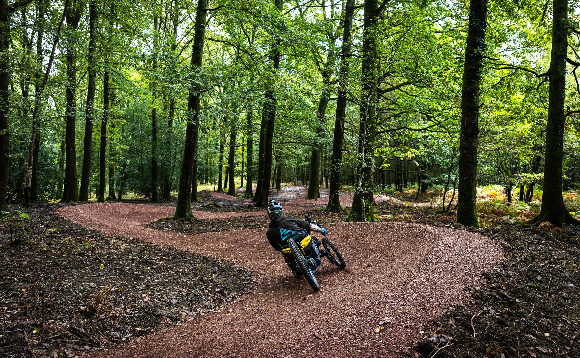 As the trail turns downhill and you start to pick up speed, the corners will carry you down - be sure to use your brakes!