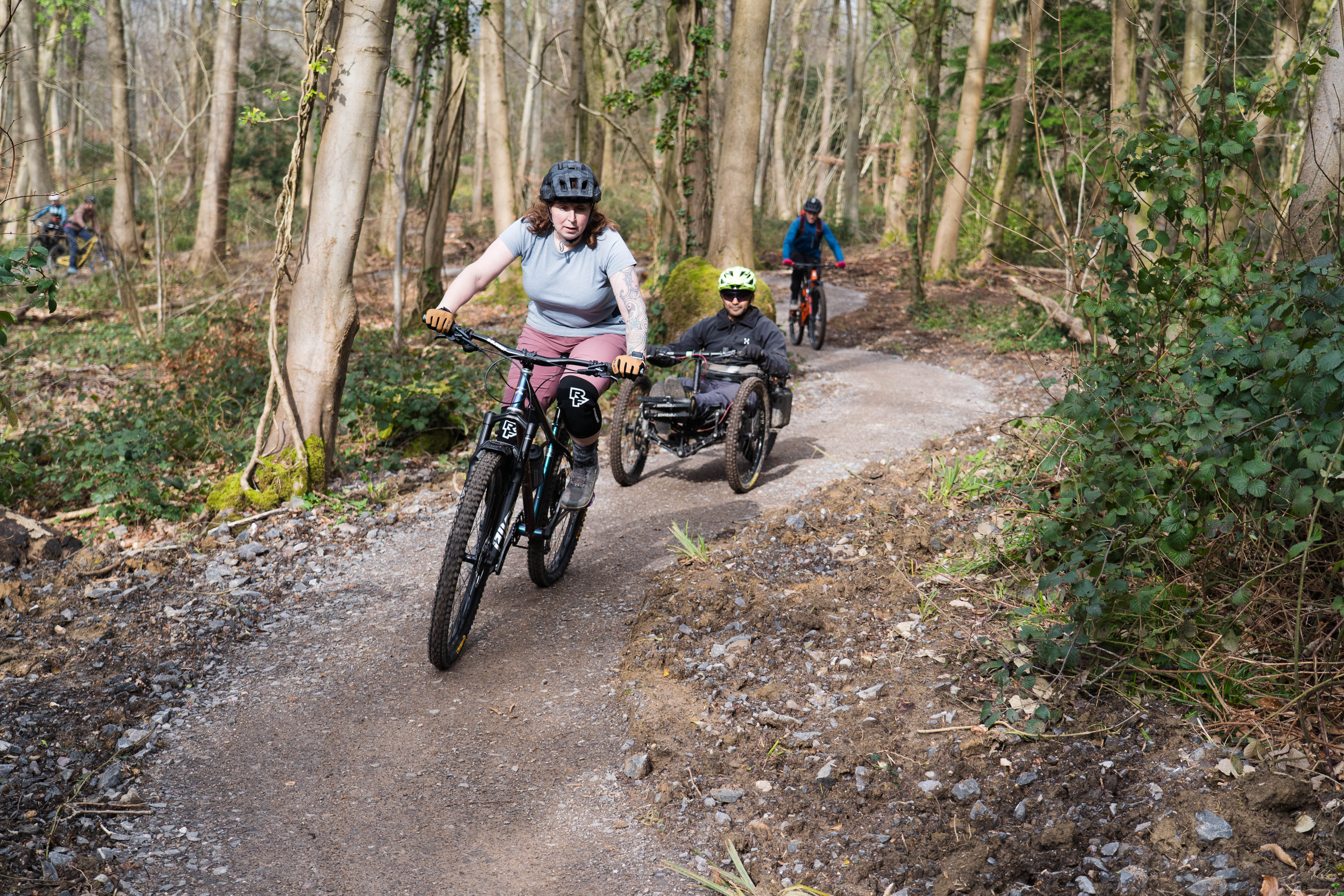 Please ride cautiously, giving way to other woodland users where the trail crosses paths. Expect to meet other people enjoying the woods, including walkers, dog walkers and children. Helmets must always be worn when riding.